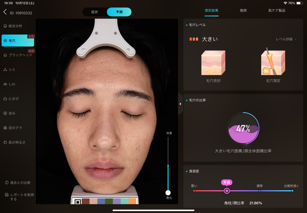 シミやシワに関しては、ただ存在を示すだけでなく、大きさ・数・深刻度まで数値化した詳細レポートが生成されます。